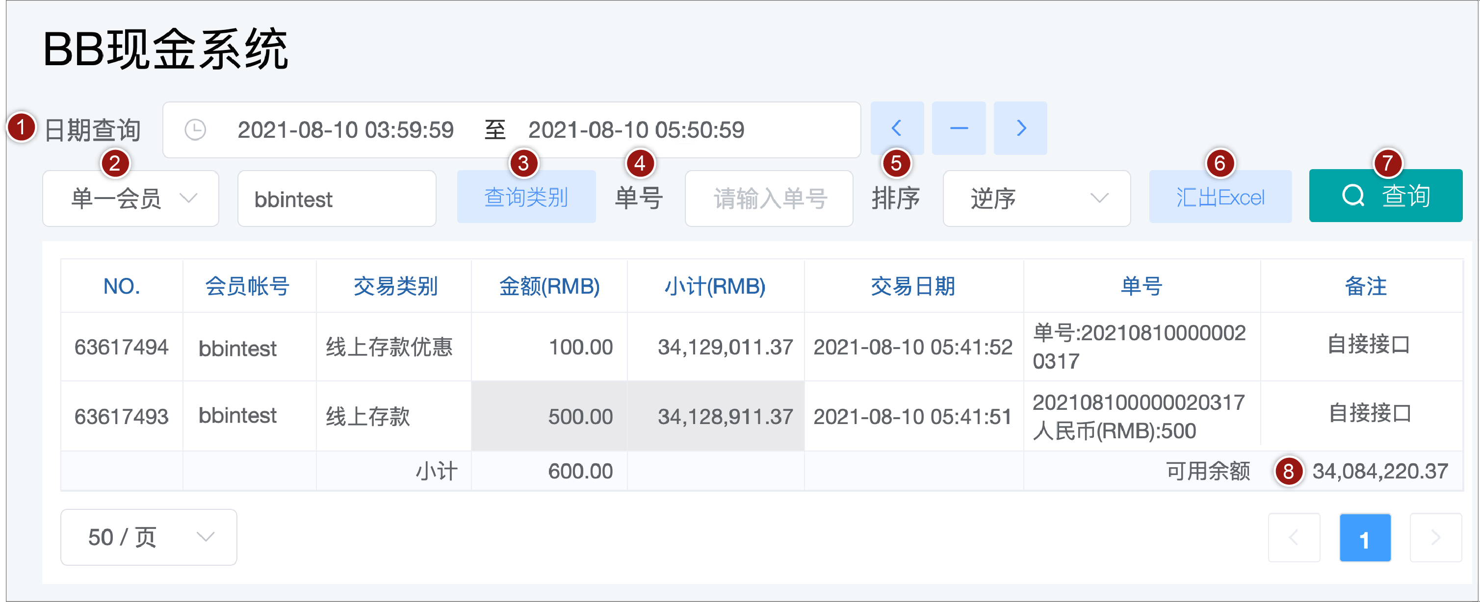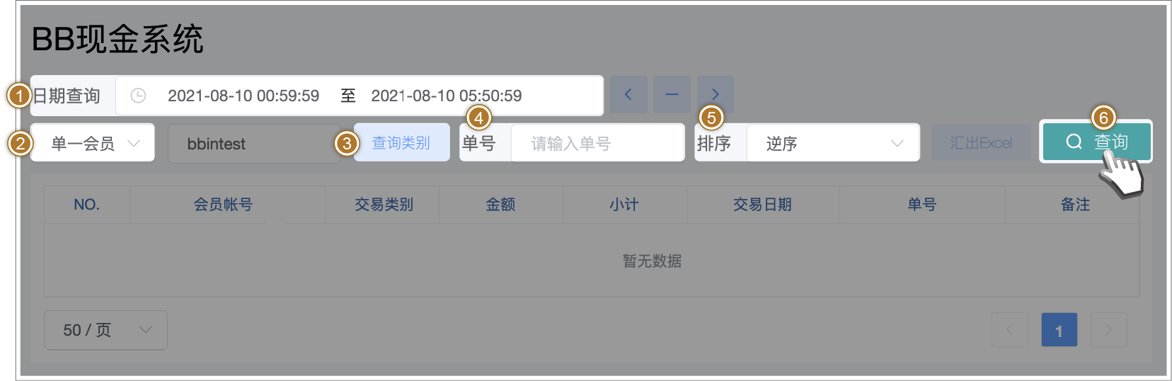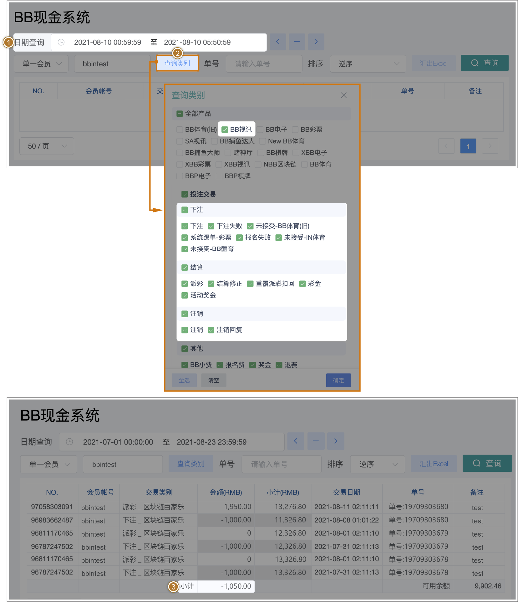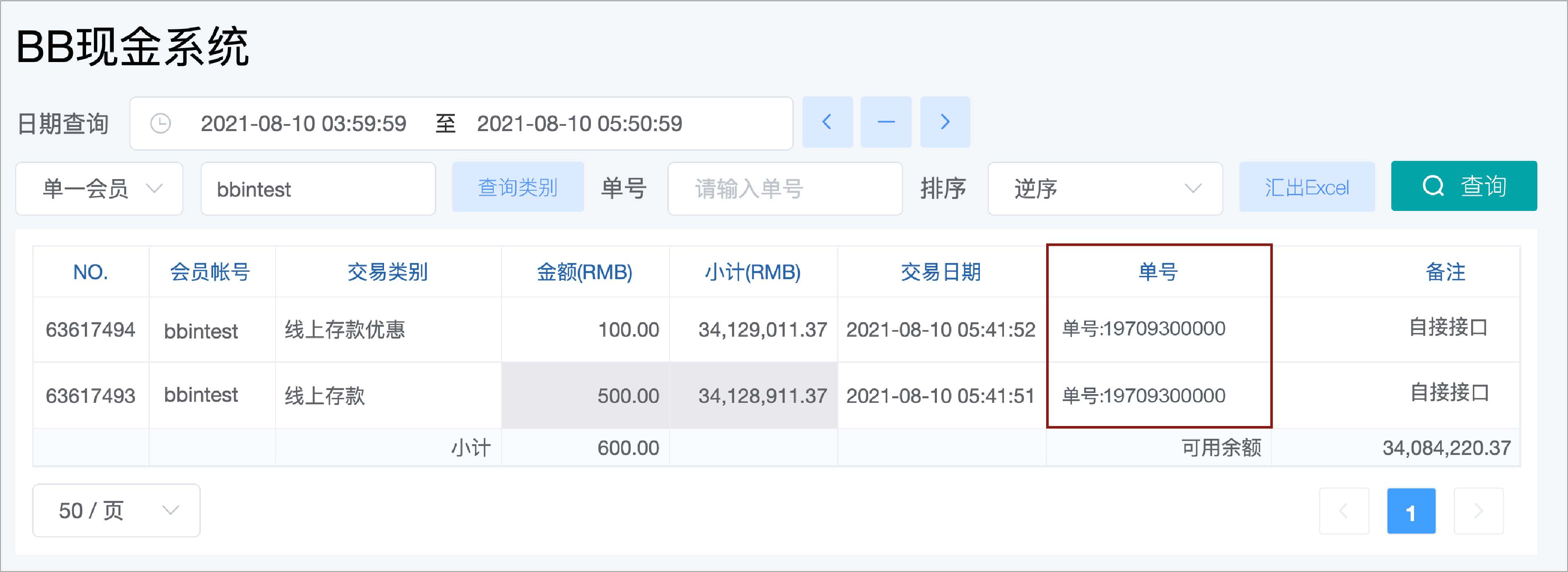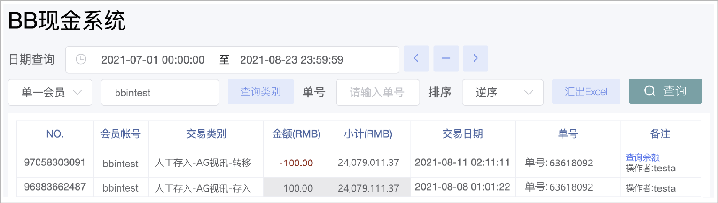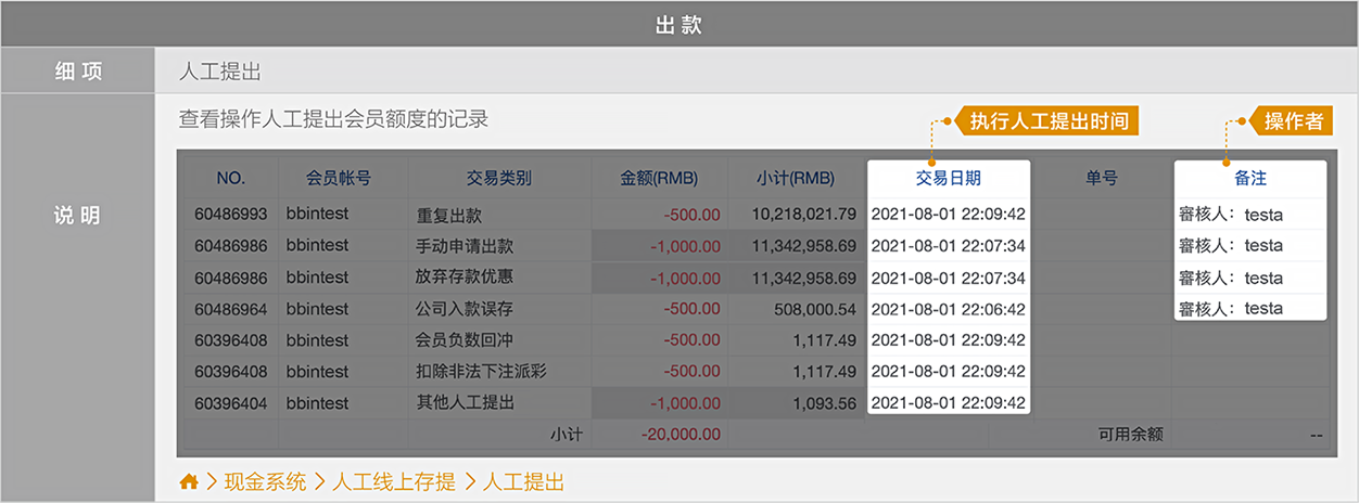 BB现金系统的【单号】栏位 = 往来记录的【备注】栏位(会员端看不到BB现金系统的备注栏位)