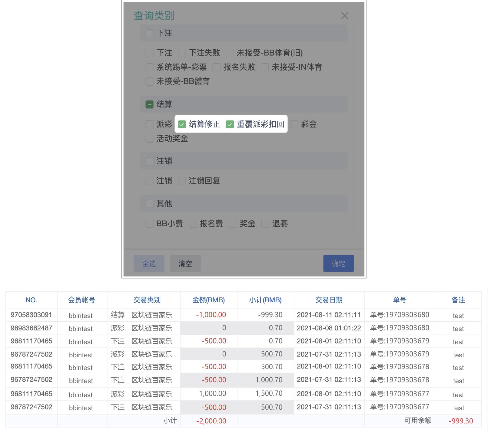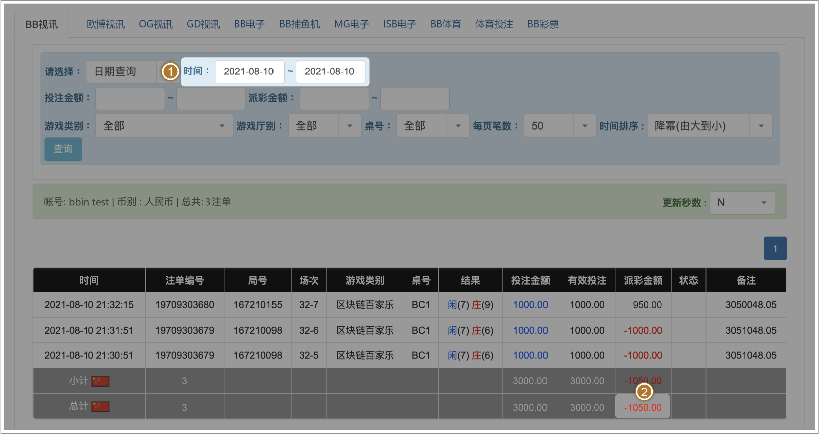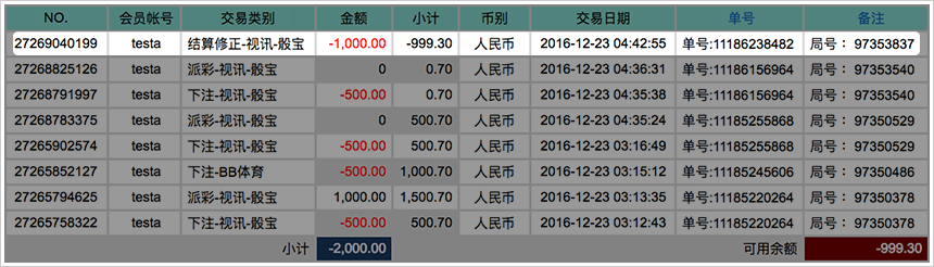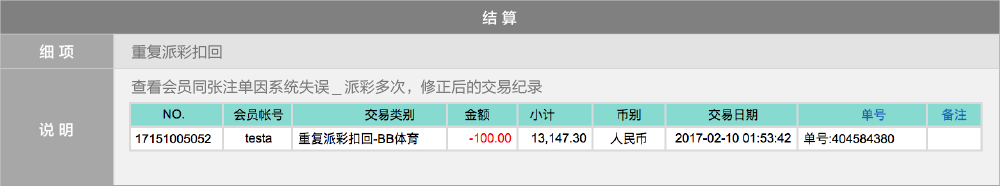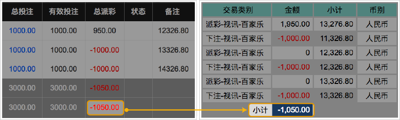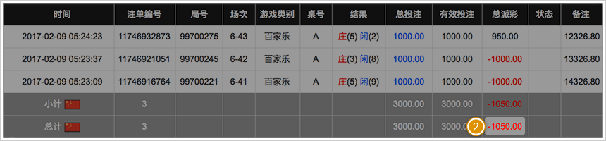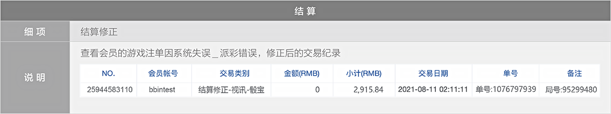 在BB视讯皆已派彩的情况下,可以核对「BB现金系统」与「下注纪录」的派彩总计是否相同,即可判断额度是否正确