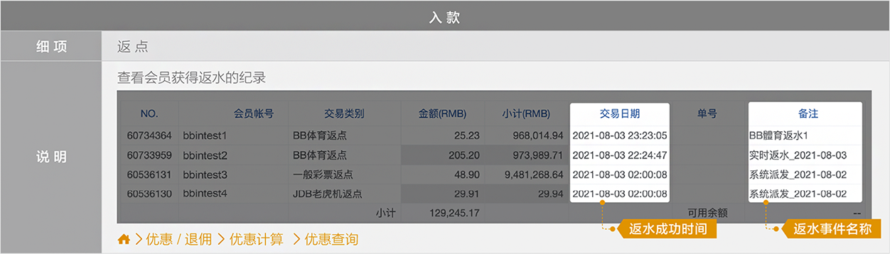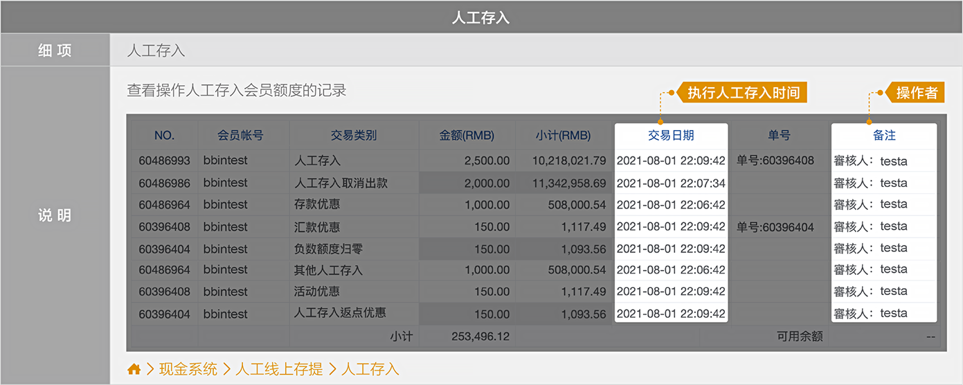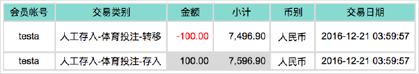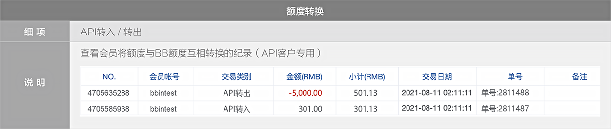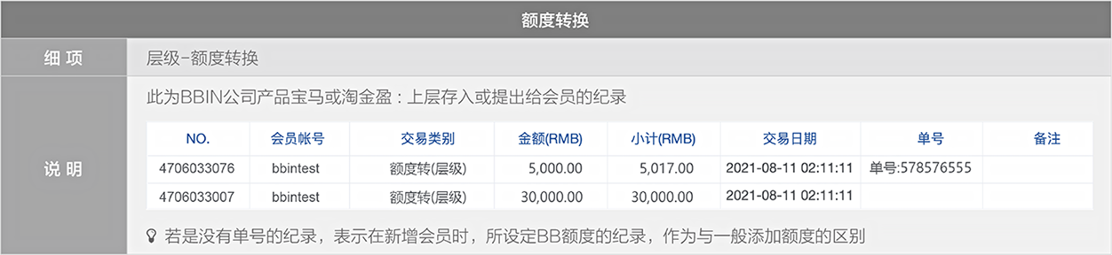 使用人工存入,当选择存入其他平台额度時,BB现金系统將有两笔新交易记录